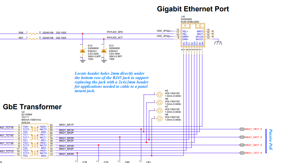 - GW2350/GW2351 have the TVS array on the input side of the mags thus will short power to gnd if a GigE passive PoE is used on these 10/100mbps board